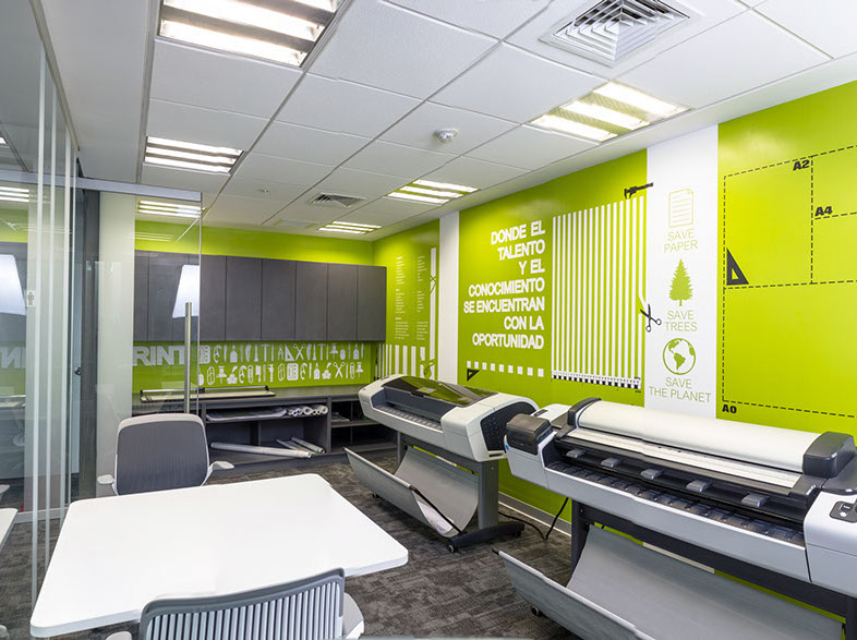 Óptima distribución de los recursos espaciales en función de necesidades operativas. 60% de las paredes son imantadas, incorporamos la superficie vertical cómo área de trabajo.