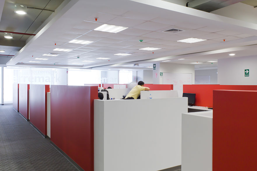 Construcción de 2 pisos de oficinas que reflejan la imagen de la empresa. El planteamiento del proyecto: espacios abiertos que estimulen el trabajo participativo.